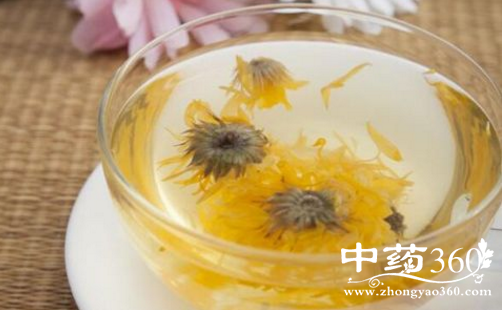 此方中,菊花,性微寒,味辛、甘、苦,归肺、肝经,是一味治疗肝病的常用中药材,具有平肝熄风、治疗头痛眩晕、目赤肿痛的作用。另外,此方中用于冲泡的菊花用白菊花即可,它更为平和。槐花,其味苦,性微寒,归肝、大肠经,具有凉血止血、清肝泻火的作用,用于便血、痔血、血痢、崩漏、吐血、衄血、肝热目赤、头痛眩晕。《医林纂要》记载,槐花能“泄肺逆,泻心火,清肝火,坚肾水。”现代研究表明,槐花中的槲皮素可扩张冠状血管,改善心肌循环;槐花液、槐花酊剂对麻醉犬、猫有暂时显著的降低血压作用,槐花中的芸香甙及其制剂有降压作用,槲皮素亦能短时间的降压;此外,槐花还具有很好的抗氧化作用,常饮不仅能提升免疫力,还能起到美容的作用。但由于槐花性质偏寒,因此脾胃虚寒者应该慎用。