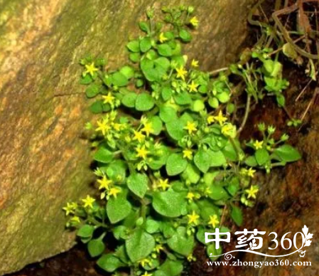 【原形态】火焰草 一年生或二年生草本,高10-15cm。全株被腺毛。茎直立,较纤细,有多数斜上分枝,基部略木质化。叶互生;叶柄长4-8mm;叶片正三角形或三角状卵形,长10-20mm,宽5-10mm,先端钝或急尖,基部宽楔形至截形,全缘。总状聚伞花序,顶生,疏分枝,花多数;花梗长5-10mm;萼片5,披针形至长圆形,长1-2mm;花瓣5,黄色,披针状长圆形,长3-5mm;雄蕊10,2轮,较花瓣短,花药肾形,黑紫色;鳞片5,宽匙形至宽楔形,先端有微凹;心皮5,近直立,长圆形,先端突狭成短花柱。蓇葖果,上部略叉开,基部合生。种子长圆状卵形,长0.3-0.5mm,有纵纹,淡褐色。花期6-8月,果期8-9月。