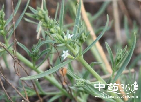 1、多年生柔弱草本,高15-40cm。全株多少被白粉,无毛;茎细长,簇生,基部以上疏分枝,斜升,有纵沟。叶线形、长1.5-3.5cm,宽0.5-1.5mm,先端急关或渐尖,具单脉。花单一,5数,腋生;花梗短或很短,长3- 3. 5mm;苞片1枚,线状披针形;小苞片2枚,线形,长2-6mm,边缘粗糙;花被绿白色,长2.5-3mm,花被管呈管状,花被裂片,先端锐尖,内弯,内面的微毛不明显;推蕊不外伸;子房无柄,花柱很短。坚果椭圆形或近球形,长或宽2-2.5mm,淡绿色,表面有明显、隆起的网脉,先端的宿存花被近球形,长约2mm;果柄长3. 5mm。花期4月,果期6月。