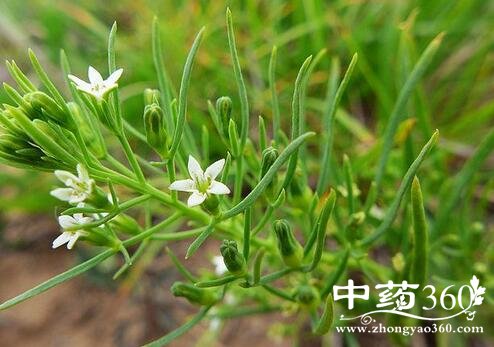 性状鉴别:全草多分枝,长20-40cm。根圆锥形,直径1-4mm;表面棕黄色,有纵皱纹,具细支根。茎丛生,纤细,长12-30cm,暗黄绿色,具纵棱;质脆,易折断,断面中空。叶互生,线状披针形,长1-3cm,宽0.5-15mm,灰绿色。