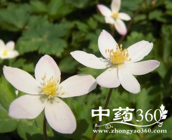 【原形态】林荫银莲花,多年生草本。高15-40cm。根茎近横生,圆柱形,直径2-13mm,节间短。基生叶1-2;叶柄长10-28cm,无毛或近无毛;叶片轮廓五角形,长3.5-7.5cm,3全裂,中央全裂片3裂,末回裂片卵形或宽披针形,有1-3齿或全缘,侧生全裂片不等2深裂,边缘有不整齐齿,上面有疏毛,下面通常无毛或近无毛。花葶上部有疏柔毛;苞片3,轮生,叶状,不等大,无柄;花两性;萼片5,花瓣状,白色,倒卵形或椭圆形,长7-10mm,宽4-5.5mm,先端钝或圆,外面有疏柔毛;花瓣无;雄蕊多数,长约为萼片之半,花药长约0.8mm;心皮约8,密被淡黄色短柔毛,无花柱,柱头近球形,花期4-6月,果期5-8月。