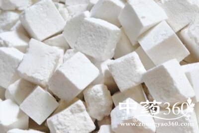 茯苓味甘、淡,性平。归心、肺、脾、肾经。利水渗湿,健脾和胃,宁心安神的功效。用于小便不利,水肿胀满,痰饮眩悸,脾虚食少,便溏泄泻,心神不安,惊悸失眠,咳逆,呕逆,恶阻,泄泻,遗精,淋浊,健忘等症。