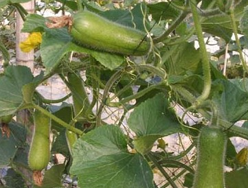 【原形态】一年生攀援草本,为冬瓜的变种。茎略成方形,被黄褐色毛,卷须分枝。单叶互生;有长柄;叶片阔卵形或肾状卵形,具5~7棱角或浅裂状,先端尖,基部心形,边缘有小锯齿。花单性,雌雄同株,单生于叶脓;雄花花柄长可达10余厘米;花萼管状,5裂,裂片三角状卵形,有锯齿;花冠黄色,5裂几达基部;雄蕊3,花药分离;雌花柄短;子房下位,长椭圆形,子房在生活状态下被污浊色、黄色粗毛,柱头3裂,略扭曲。瓠果长柱形,远较冬瓜为小,长15~25厘米,直径4~10厘米;老熟后仍被有疏粗毛,表面无白色蜡质粉末。种子多数,长卵形。花期5~6月。果期6~8月。