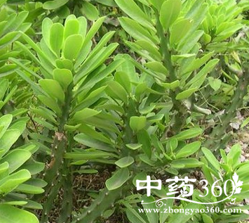 【来源】大戟科大戟属植物金刚纂Euphorbia antiquorum L.,以茎、叶(去净汁液);液汁(茎、叶切开流出白色液体)入药。全年可采,多为鲜用。