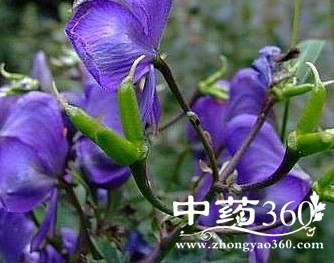 【原形态】紫乌头,多年生草本。块根倒圆锥形,长约5cm,直径约1.8cm。茎缠绕,有分枝,上部疏被伸展的或反曲的短柔毛。叶互生;叶柄与叶片近等长,被反曲的短柔尾与叶片近等长,被反曲的短柔毛,或几无毛;茎中部叶的叶片五角形,长7.5-10cm,宽10-15.5cm,基部心形,3裂达基部或近基部,中央全裂片菱形,近羽状深裂,侧全裂片斜扇形,一回侧裂片不达基部,二回裂片3-4对,全缘或具1-3小裂片,两面疏被短柔毛或无毛。总状花序有3-8朵花;花序轴和花梗密被淡的色短桌上或微硬毛;苞片线形;花梗长1.5-4cm;小苞片生花梗中部或下部,狭线形,长3-8mm,宽0.3-0.5mm,密被短柔毛。花两性,两侧对称;萼片5,花瓣状,蓝紫色,上等片高盔形,高1.7-2.4cm,下缘长1.5-1.6cm,与外线形成向下展的喙,侧萼片长1.2-1.4cm,外面密被短柔毛;花瓣2,唇长4.5-6mm,微凹,距长约3mm,向后弯曲,无毛;雄蕊多数,花丝全缘或有2小齿,无毛;心皮5,无毛或上部疏生短毛。蓇葖果长1.1-1.8cm,无毛。种子多数,三棱形,长2.5-3mm,密生横膜翅。花期7-10月,果期8-11月。