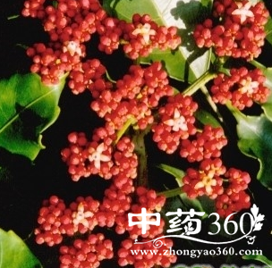 【原形态】火筒树 小乔木,高4m以上。小枝褐色,有纵细条纹,无毛;无卷须。叶为二回单数羽状复叶,长1m或更长,总叶柄圆柱形,长达20cm,无毛,有纵条纹;小叶大小不等,披针形、宽披针形或长圆形,长6.5-19cm,宽6.5-9.5cm,先端长尾尖,基部宽楔形,两面无毛,边缘有粗锯齿;侧脉6-14对,在近叶缘处汇合;小叶柄长3-10mm。花两性,伞房状聚伞花序在小枝上部与叶对生,长7-13cm;花淡绿色,花梗长3-5mm;花萼5裂,裂片卵圆形;花瓣5,基部合生,花开后外弯;雄蕊5,合生成筒状,花药藏于花盘内,互相粘合;花盘筒状,顶部有裂齿;子房5室,长约1mm。浆果扁球形,直径6-8mm,熟时黑色。种子5-6颗。花期5-8月,果期7-12月。
