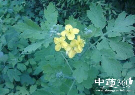 为罂粟科植物白屈菜的带花全草。5~7月开花时采收地上部分,置通风处干燥。