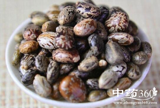 ⑨治犬咬伤:蓖麻子五十粒。去壳,以井水研膏,先以盐水洗咬处,次以萆麻膏贴。(《袖珍方》)