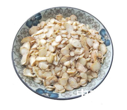 【性状】本品呈类球形或破碎成不规则颗粒状。表面淡黄白色、黄色或棕黄色。质较松脆或硬脆,断面黄色或淡黄色,颗粒者质稍硬脆。气微,味淡略甘、微有麻舌感。