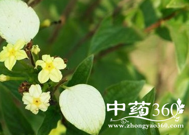 【原形态】小乔木,高3米。树皮灰色,枝被毛,皮孔明显。单叶对生,卵圆披针形,长10~15厘米,宽4~8厘米,先端渐尖,基部楔形,上面被疏毛,下面毛较密,叶脉尤为明显;叶柄长约1厘米,全缘。伞房花序顶生,花金黄色,有叶状白色苞片,长7~9厘米,宽4~5厘米,柄长3~4厘米。蒴果卵圆球形或椭圆状倒卵形,成熟时顶部室裂。