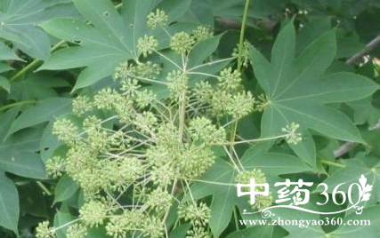 【原形态】落叶大乔木,高约10m,最高可达30m,胸围达70cm以上。树皮暗灰棕色,小枝圆柱形,淡黄棕色或灰棕色,具鼓钉状皮刺,刺长5-6mm,基部宽6-7mm。叶在长枝上互生,在短枝上簇生,叶柚细长,长8-50cm,无毛;叶片近圆形或扁圆形,掌状5-7浅裂,裂片三角卵形至长椭圆状卵形,长不及全叶片的1/2,茁壮枝上的叶片分裂较深,裂片长超过全叶片的1/2;先端渐尖,基部心形,边缘有细锯齿,上面深绿色,无毛,下面淡绿色,仅脉上具淡棕色软毛或除基部脉腋外无毛。伞形花序列 聚生为顶生圆锥花序,长15-25cm,直径20-30cm;伞形花序直径1-2.5cm,有花数朵;花萼无毛,边缘有5齿;花瓣5,三角状卵形,长约1.5mm,白色或淡黄绿色;雄蕊5,长约2.5mm,内曲,花丝较花瓣长1倍以上;子房下位,2室;花盘隆起,花柱2,合生成柱状,柱头离生。核果近球形,成熟时蓝黑色,直径约5mm;宿存花柱长约2mm。种子2,扁平。花期7-10月,果期9-12月。