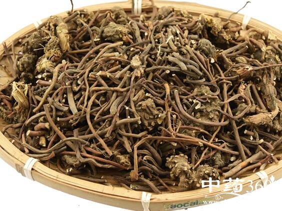 1.性状鉴别 根茎呈不规则结节块状,每一结节类球形,直径0.8-1.2cm,表面棕褐色,有不明显的环节及众多须状根和须根痕。须根圆柱形,直径1-3mm,表面棕黄色,平滑,有细纵纹。质硬,折断面黄色,纤维状,横断面皮部平坦,木质部突起,环状排列,髓部小,约占直径的1/4。气微,味苦。