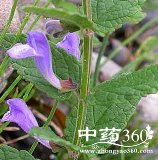 【原形态】盔状黄芩,多年生草本。根茎匍匐;茎直立,高35-40cm,中部以上多分枝,下部常无叶。叶对生;叶柄长2-7mm,腹凹背凸,背面密被短柔毛;叶片长圆状披针形,长1.5-6cm,宽0.8-3cm,自茎下向上渐变小,先端锐尖,基部浅心形,边缘具圆齿状锯齿,上面绿色,疏被短柔毛,下面淡绿色,密被短柔毛,侧脉约4对。花单生于茎中部以上叶腋内,一侧向;花梗长约2mm,密被下曲短柔毛,近基部有一对线形的小苞片;花期花萼长约3.5mm,盾片着生在萼筒中部稍下文,果时花5mm,盾片直伸;花冠紫色,紫蓝至鉴色,长约1.8cm,外被具腺短柔毛,冠筒基部微囊状,向上渐增大,冠檐二唇形,上唇半圆形,盔状,内凹,先端微缺,下唇中裂片三角状卵圆形;雄蕊4,均内藏,前对较长,具能育半药,后对较短,具全药;花柱细长,先端锐尖,微裂;子房4裂,裂片等大。小坚果黄色,三棱状卵圆形,径约1mm,具小瘤突,腹面中央具果脐。花期6-7月,果期7-8月。