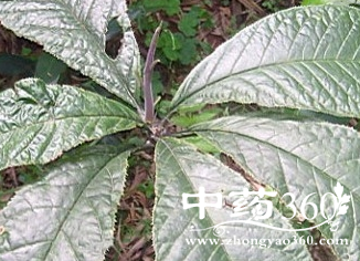 【原形态】红背兔耳风 多年生草本,高约30cm,根状茎短,必被棕色长绒毛。茎直立,直棕色柔毛。叶基生;叶柄长2-8cm,密被棕色长绒毛;叶片卵状披针形,长3-8cm,宽1.5-3.5cm,先端急尖,基部心形,上面绿色,有灰白色云石状斑纹,下面紫红色,全缘,两面及边缘被棕色长绒毛,茎生叶极小,长0.5-1.5cm。头状花序多数,排成狭或上部较宽的复总状,每个头状花序有3小花;总苞片约5层,外层小,卵形,内层披针形,先端极尖,边缘膜质;花两性,白色;花冠5深裂。瘦果疏生柔毛;冠毛淡棕色。