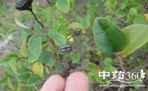 【植物形态】常绿、多分枝灌木,高1~5米,小枝被星状毛。叶互生,卵形或椭圆形,长2~5厘米,顶端锐尖,基部钝,全缘;侧脉每边5条,明显;叶柄长达5毫米,被星状毛;托叶三角状披针形。花春季开放,3~8朵簇生于枝顶,具短梗;萼杯状,4裂,裂齿卵形;花瓣4,白色或黄白色,带状,长1~2厘米;发育雄蕊4,花丝极短,花药4室,瓣裂,药隔伸出呈刺状,退化雄蕊与发育雄蕊互生;子房半下位或下位,2室,花柱2;胚珠每室1。蒴果木质,卵球形,长7~8毫米,被棕色星状茸毛,上半部2裂,下半部被宿存萼筒包裹;种子卵形,黑色。花期5月,果期10月。