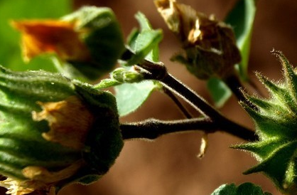 【植物形态】磨盘草 一年生成多年生、直立、分枝,亚灌木状草本,高0.5~2.5米,全部皆被灰色短柔毛。叶互生,具长柄;圆卵形至阔卵形,长3~9厘米,宽2.5~7厘米,先端短尖,基部心形,叶缘有不规则的圆齿,两面皆被灰色小柔毛。花单生叶腋,黄色,直径2~2.5厘米;花柄长,近顶端有节;萼盘状,5深裂,绿色,密被灰色小柔毛,裂片阔卵形,短尖;花瓣5,较萼长2倍以上;雄蕊多数,花丝基部连成短筒;子房上位,心皮15~20,轮状排列。蒴果圆形似磨盘,高约1.5厘米,宽2厘米,分果爿15~20,顶端具短芒。种子肾形,被星状疏柔毛。 生于砂地、旷野或路旁。分布广东、广西、贵州、云南、福建、台湾等地。 本植物的根(磨盘根)、种子(磨盘草子)亦供药用,各详专条。