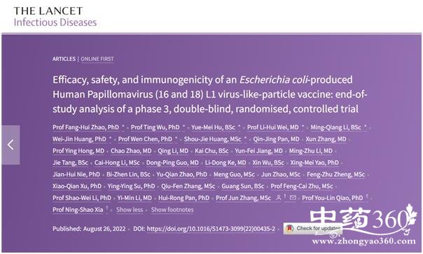 《柳叶刀》刊发馨可宁5.5年随访结果:对宫颈癌前病变预防效力达100%