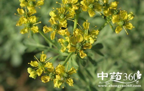 多年生草本,高可达1米,有强烈气味。基部木质化,全株无毛,有腺点。叶互生,2~3回羽状复叶,全裂至深裂,长5~15厘米,裂片倒卵状长圆形、倒卵形或匙形,长1~2厘米,全缘或微有钝齿。聚伞花序顶生或腋生;花金黄色,直径约1~2厘米;萼片4~5,细小,宿存;花瓣4~5,边缘细撕裂状;雄蕊8~10,花初开时与花瓣对生的4枚贴伏于花瓣上,与萼片对生的4枚较长,斜出外露,盛开时全部雄蕊并列一起且等长;心皮3~5,上部离生;花盘有腺点。蒴果4~5室,成熟时开裂。种子肾形,黑色。花期春季。