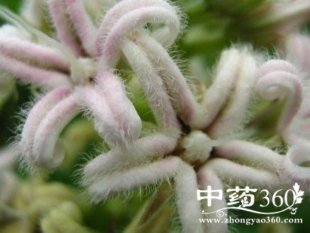 多年生蔓性草本,长达2米以上,折断后有乳白色液流出,全体被柔毛。地下茎易繁殖,地上茎常缠绕他物上升。叶对生,卵状心形,长6~10厘米,宽4~8厘米,先端锐尖,基部心形,全缘;具柄,长1~6厘米,被细毛。总状花序腋生;总花梗长3~9厘米,被灰白色细毛;花多数,密生于顶端,各花具小梗,基部有一个披针形的小苞片;萼绿色,5深裂,裂片狭披针形,先端尖;花冠绿白色,内带淡紫色,5裂,裂片披针形,反卷,内面密生细毛;副花冠低,呈环形;雄蕊5,花药箭形,先端有心脏形薄膜;雌蕊1,子房上位,由两个离生心皮组成,花柱2,合成柱状,伸出药外,柱头2裂。蓇葖果呈角状,长约9~12厘米,成熟时淡褐色。种子多数,扁卵形,边缘成翅状,上端着生多数白色绢丝状毛。花期7~8月。果期9~10月。