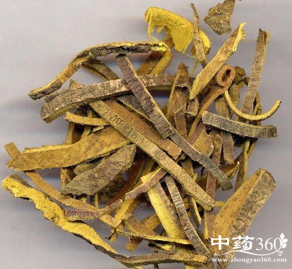 【关黄柏】芸香科植物黄檗Phellodendron amurense Rupr.的树皮。剥取树皮后,除去粗皮,晒干
