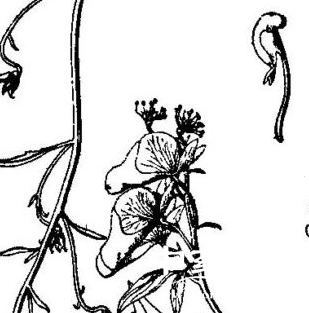 【原形态】松潘乌头,多年生草本。块根近圆形,长约3.5cm,茎缠绕,长达2.5m,无毛或几无毛,有分枝。叶互生;茎中部叶有稍长柄;叶片五角形,长5.8-10cm,宽8-12cm,3全裂,中央全裂片卵状菱形或近菱形,下部3裂,两面被疏短柔毛。总状花序有5-9朵花;花序轴和花梗无毛或疏被反曲短柔毛;下部苞片3裂,上部苞片线形;花梗长2-4cm,多少弧状弯曲;小苞片生花梗中部至上部,线状钻形;花两性,两侧对称,萼片5,花瓣状,淡蓝紫色,外面无毛或有短柔毛,上萼片高盔形,高1.8-2.2cm,下缘长1.4-1.5cm,稍凹,外缘近直或中部稍缢缩,与下缘形成短喙,侧萼片长1.3-1.5cm;花瓣2,唇长4-5mm,微凹,距长1-2mm,向后弯曲,无毛或疏被短毛;雄蕊多数,花丝无毛或有短毛,全缘;心皮5,无毛或疏被短毛。蓇葖果,长1-1.5cm,无毛或疏被短柔毛。种子多数,三棱形,长约3mm,沿棱生狭翅,只在一面密生横膜翅。花期8-9月,果期9-10月。