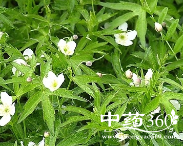 【原形态】二歧银莲花,多年生草本,高35-60cm。根茎横生,细长,暗褐色。茎直立,上部通常2叉状分枝。基生叶1,早顶替,通常不存在。花葶被贴伏的短柔毛;苞片2,对生,轮廓扇 形,长3-6cm,3深裂近基部,深裂片近等长,长圆形或长圆状披针形,中部全缘,上部具少数缺刻状尖牙齿,上面近无毛,下面被短柔毛。花序一至二回二歧状分枝,一回分枝炒等长或近等长,长9-14cm,二回分枝长1-10cm,小苞片形状似苞片,较小;花两性,单生于花序分枝处;萼片5,花瓣状,白色或带粉红色,倒卵形或椭圆形,长0.7-1.2cm,宽7-8mm;花瓣无;雄蕊多数,长达4mm;心皮约30,长约2.2mm,无毛,花柱短。瘦果卵形,长5-7mm。花期6月,果期7-8月。