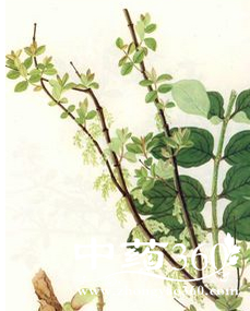 【植物形态】落叶灌木,高可达6米。主根粗大,根皮红褐色。幼枝有棱,带紫红色。单叶对生,椭圆形或卵圆形,顶端急尖,无毛或仅下面沿脉有细毛,全缘。总状花序侧生于上年生枝上,下垂;花杂性,雄花序先叶开放;花小,花瓣5枚,稍带绿色或红色,后花增大变成肉质,包被果实。果为浆果状瘦果,5个,外包肉质花瓣,熟时花被由红色变为紫黑色。花期4~5月,果期7~8月。