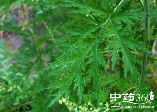 青蒿善清虚热、退骨蒸;人参补气生津,为补虚要药,二药相伍,相辅相成,治虚热出汗最效。4配绿豆、西瓜衣