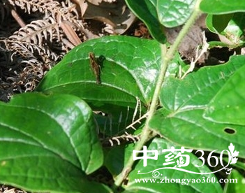 【原形态】华南胡椒 木质攀援藤本。枝无毛,有纵棱,节上生根。单叶互生,全缘,厚纸质,无明显腺点,无毛;下部叶柄长达2cm,上部叶柄长4-10mm,叶鞘长为叶柄之半或略短;花枝下部叶片阔卵形或卵形,长8.5-11cm,宽6-7cm,先端短尖,基部通常心形,两侧相等,上部叶卵形或卵状披针形,长6-11m,宽1.5-4.5cm,先端渐尖,基部钝或略狭,两侧常不等齐;叶脉5条,少有7条,大都全部基出。花单性,雌雄异株,聚集成与叶对生的穗状花序;雄花序圆柱形,长3-6.5cm,苞片圆形,无柄,盾状,雄蕊2枚,花丝与花药近等长;雌花序长1-1.5cm,子房基部嵌生于花序轴中,柱头3-4,被绒毛。浆果球形,直径约3mm,基部嵌生于花序轴中。花期4-6月。