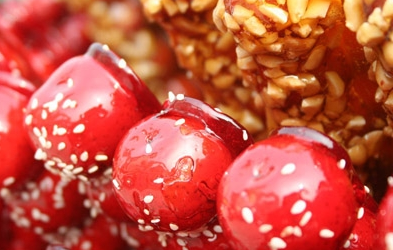 山楂,又叫“山里红”、“胭脂果”,蔷薇科落叶小乔木,树皮暗灰色,有浅黄色皮孔,小枝紫褐色,单叶互生或于短枝上簇生,叶片宽卵形,伞房花序,花白色,后期变粉红色,果实球形,熟后深红色,表面具淡色小斑点。花期5-6个月,果期7-10月。生于海拔400-1000米间的向阳山坡、杂木林缘、灌丛间、蔬林内。山里红果实酸甜可口,能生津止渴,具有很高的营养和药用价值。山楂除鲜食外,可制成山楂片、果丹皮、山楂糕、红果酱、果脯、山楂酒等。山楂片和山楂果丹皮是最普通,最流行的品种。亦可入药,入药归脾、胃、肝经,有消食化积、活血散瘀的功效。