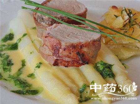 2、将地笋洗干净,切成丝,然后放进沸水中焯一下,降水沥干备用。