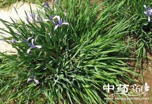 多年生草本,高约25~30余厘米。根茎粗壮,根细而坚韧。叶基生,线形,长20~40厘米,宽3~6毫米,先端渐尖,全缘,下部带紫色,质较硬,光滑无毛,平行脉两面凸起,7~10条。花茎近上端有3片叶状苞片;花淡蓝紫色,1~3朵,生于花茎顶端,花被6,2轮,下部联合成筒,外轮匙形,向外弯曲而下垂,内轮倒披针形,直立;雄蕊3,密接在花柱外侧,花药长;蜂蕊1,子房下位,狭长,花柱3深裂,扁平,柱头呈花瓣状2裂。蒴果纺锤形,具三棱,先端细。种子多数,红褐色,为不规则的圆形,有棱。花期4~6月。果熟期8~9月。