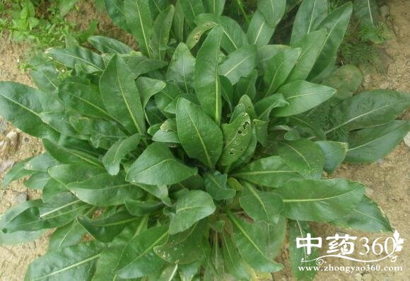 为根叶、多皱缩成不规则的团块,有的已破碎仅剩基部叶柄,大小不一,呈暗绿色,完整的叶片呈长椭圆形至长圆倒披针形,长4~11cm,宽1~3cm,全缘成微波状,先端钝尖,基部狭窄与叶柄合成翼状。叶脉于背面较明显;叶柄长5~7cm,背面稍凸,略呈槽状,基部略膨大。质脆易碎。气微,叶微酸、苦、涩。