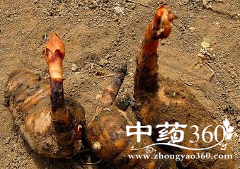 【原形态】天麻,多年生寄生草本,高60-100cm,全株不含叶绿素。块茎肥厚,肉质,长圆形,长约10cm,直径3-4.5cm,有不甚明显的环节。茎圆柱形,黄赤色。叶呈鳞片状,膜质,长1-2cm,具细脉,下部短鞘状抱茎。总状花序顶生,长10-30cm,花黄赤色;花梗短,长2-3mm;苞片膜质,狭披针形或线状长椭圆形,长约1cm;花被管歪壶状,口部斜形,基部下侧稍膨大,先端5裂,裂片小,三角形;唇瓣高于花被管的2/3,具3裂片,中央裂片较大,其基部在花管内呈短柄状;合蕊柱长5-6mm,先端具2个小的附属物;子房倒卵形,子房柄扭转。蒴果长圆形至长圆状倒卵形,长约15mm,具短梗。种子多而细小,呈粉末状,花期6-7月。果期7-8月。