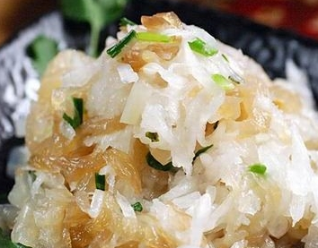 海蜇头60—90克,漂洗去咸味,同荸荠等量煮汤服。