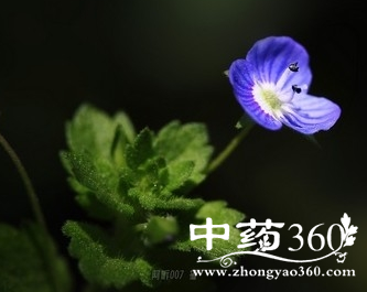 【原形态】小婆婆纳 多年生草本,高10-30cm。茎下部匍匐生根,中上部的直立,通常丛生,被柔毛。叶对生;无柄,有时下部的有极短的柄;叶片卵圆形至卵状长圆形,长8-25mm,宽7-15mm,两端钝圆,全缘或具微钝齿,光滑,3-5出脉。总状花序顶生,细长,花多,单生或复出,果期延长达20cm,花序各部分均被多细胞柔毛;花萼4深裂,裂片长卵形,长约3mm,边缘有腺柔毛;花冠蓝色、紫色或紫红色,长约4mm,辐状,筒部极短,4裂,前面1裂片长卵形,喉部无毛。蒴果近肾形或肾状倒心形,长2-3mm,宽4-5mm,基部圆形或平截,边缘有一圈多细胞腺毛,花柱长约2.5mm。花期4-6月。