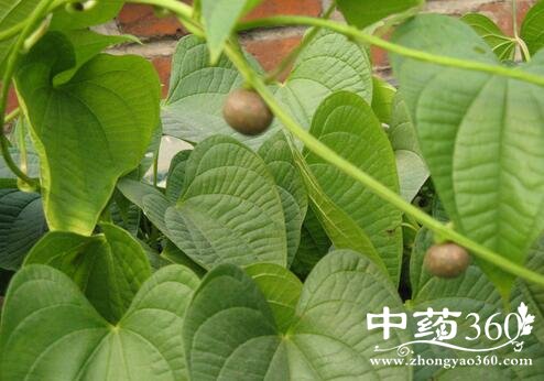 【原形态】薯蓣,缠绕草质藤本。块茎长圆形,垂直生长,长可达1m,新鲜时断面白色,富粘性,干后白色粉质。茎通常带紫红色,右旋,无毛。单叶,在茎下部的互生,中部以上的对生,很少3叶轮生;叶片变异大,卵状三角形至宽卵状戟形,长3-9cm,宽2-7cm,先端渐尖,基部深心形、宽心形或戟形至近截形,边缘常3浅裂至3深裂,中裂片卵状椭圆形至披针形,侧裂片耳状,圆形、近方形至长圆形,两侧裂片与中间裂片相摘自可连成不同的弧线,叶形的变异即使在同一植株上也常有出现。幼苗时一般叶片为宽卵形或卵圆形,基部深心形。叶腋内常有珠芽(零余子)。雌雄异株。雄花序为穗状花序,长2-8cm,近直立;2-8个着生于叶腋,偶而呈圆锥状排列;花序轴明显地呈“之”字形曲折;苞片和花被片有紫褐色斑点;雄花的外轮花瓣片宽卵形,内轮卵形;雄蕊6。雌花序为穗状花序,1-3个着生于叶腋。蒴果不反折,三棱状扁圆形或三棱状圆形,长1.2-2.0cm,宽1.5-3.0cm,外面有白粉。种子着生于每室中轴中部,四周有膜质翅。花期6-9月,果期7-11月。