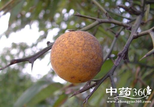 药材基源:为芸香科植物枸橘的树皮屑或果皮屑。