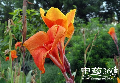 多年生球根草本花卉。株高可达100~150厘米,根茎肥大;地上茎肉质,不分枝。茎叶具白粉,叶互生,宽大,长椭圆状披针形。阔椭圆形。总状花序自茎顶抽出,花径可达20 厘米,花瓣直伸,具四枚瓣化雄蕊。花色有乳白、鲜黄、橙黄、桔红、粉红、大红、紫红、复色斑点等50多个品种。 花期北方6月~10月(北方);南方全年。