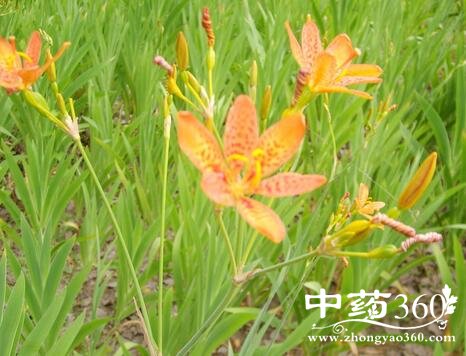 【来源】 本品为鸢尾科植物射干Belamcanda chinensis (L.)DC.的干燥根茎。春初刚发芽或秋末茎叶枯萎时采挖,除去须根及泥沙,干燥。