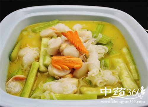 调味——鲜角瓜250克切块,猪瘦肉200克切片,加水适量共煮汤,煮熟后食盐调味佐膳。