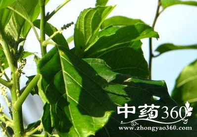 【性状】性状鉴别 单叶互生,叶柄长5-14cm,柄的顶端有2腺体;叶片宽卵形至卵状长圆形,长10-20cm,宽5-12cm,先端钝或短尾尖,基部圆或宽楔形,边缘不规则的齿缺;两面沿脉被柔毛,干后渐脱落。气微,味辛,微苦。