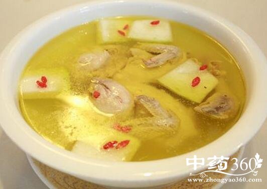 材料:高汤、海带20克、冬瓜片(连皮煮)40克、鱼片60克、蛤蜊60克、陈皮5克。