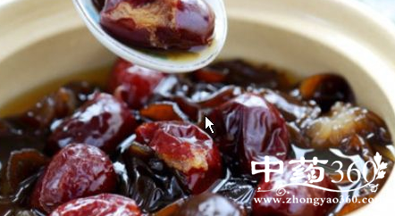 取黑木耳30克,红枣20枚。将黑木耳洗净,红枣去核,加水适量,煮半个小时左右。每日早、晚餐后各一次。经常服食,可以驻颜祛斑、健美丰肌,并用于治疗面部黑斑、形瘦。本食谱中的黑木耳,《本草纲目》中记载其可去面上黑斑。黑木耳可润肤,防止皮肤老化;大枣和中益气,健脾润肤,有助黑木耳祛除黑斑。