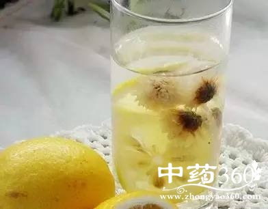 食材:柠檬20g、冰糖10g、菊花4朵、蜂蜜适量。