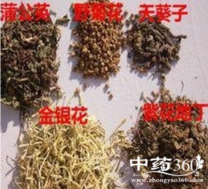银花、菊花、紫花地丁、紫背天葵、蒲公英这五种中药各取15克,然后把所有药材清洗干净,砂锅加适量清水,煮沸后加入五味药材煎煮大约10分钟,倒出药汤代茶饮。这种五味茶具有较好的清热解毒作用,每日饮用一次,大约一个星期后痘痘便会消除。