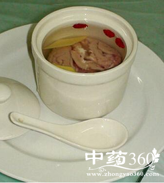 使中火煮30分钟,加入药汁,再小火慢煨至肉烂,放入精盐、味精少许即成。吃肉喝汤。此药膳祛风湿、活络止痛。主治风湿痹痛、四肢酸麻、腰膝无力等症。