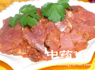 2、驴肉适量,加豆豉、五香粉、食盐调味煮熟后取出切片食用,有补益气血、安神作用。(驴肉家庭食疗简选方)