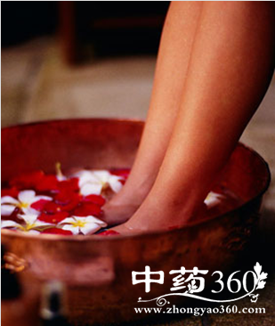 其症状表现为经前或经期小腹胀痛,经血色暗而带有血块。针对此类症状的人,应调和气血,化淤止痛。因为“女子以肝为本”,泡脚所选药物多以入足厥阴肝经的药物为主,并加入适量的引经药醋,如用青皮乌药益母草各30克,川芎、红花各10克。加入约两升水,50毫升左右的醋,大火煮开,再用小火煎煮30分钟,等药冷却至50℃时连渣倒入盆中泡脚,盆中药液量应该浸没踝关节,如果药液不足量,可加适量温水。脚在药中不停地活动,让足底接受药渣轻微的物理刺激,每次30分钟以上。