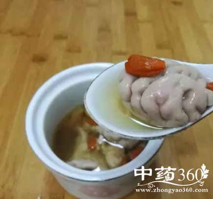 将猪脑洗净,放入瓷罐内,加姜汁、黄酒,隔水蒸熟。